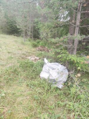 Nielen vyvrhnuté zvyšky, no i vrece odpadu. To tiež pre lesnú zver?