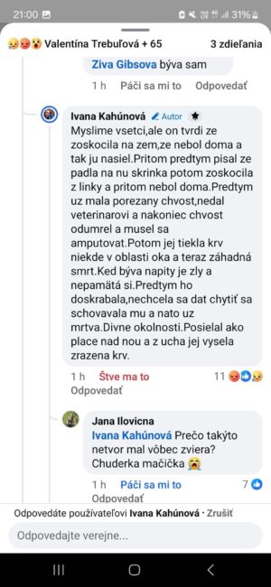 No ten by mal v tejto chvíli padnúť na kolená a modliť sa k Bohu, že som tu nedala fotku i meno, ale len úryvok z diskusie. V linku všetko je. Pokiaľ skúsi ešte nejakú mačku brať, pokorešpondujem i s jeho zamestnávateľom, čo to má zač vo firme – lebo možno kopa ľudí prestane výrobky kupovať.
